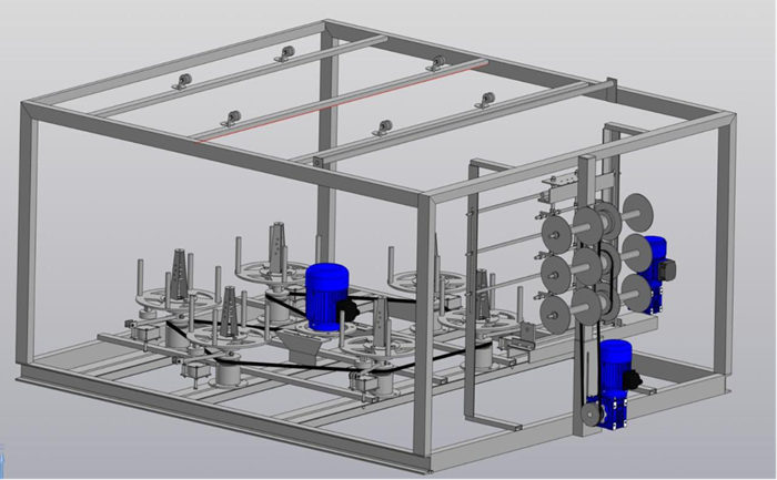 - Эффективность данного скрутчика-перемотчика позволяет непрерывно снабжать катушками до 3х линий производства композитной арматуры.