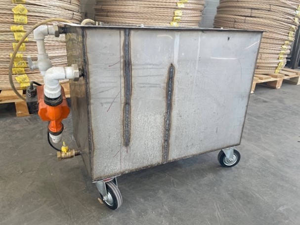 - Пропиточная ванна – оснащенная вкладкой из нержавеющей стали, объемом ~20л – до 1.5 - 2 часов непрерывной работы технологической линии. Быстрый съем для технологической очистки. Так же оснащена системой подогрева эпоксидно-полимерного связующего в пропиточной ванне для увеличения время жизни готовой смеси.